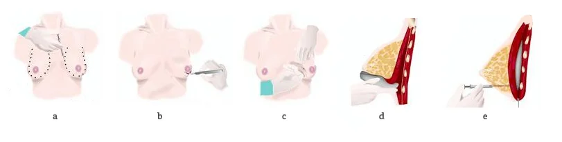 It is the most common way of enhancing the size and shape of the breast. In this method, the surgeon makes incisions under the armpit, under the breast, or around the areola and then places silicone-filled implants under the breast tissue just to offer an aesthetically improved look and shape to the breast. This surgery is performed under general anesthesia.